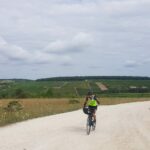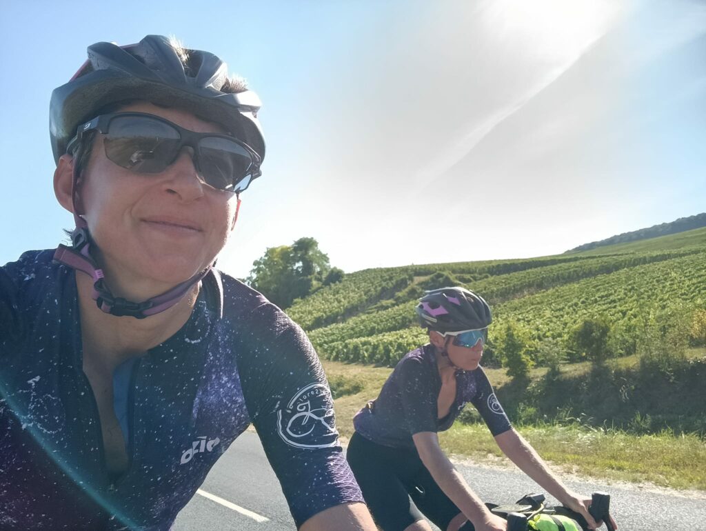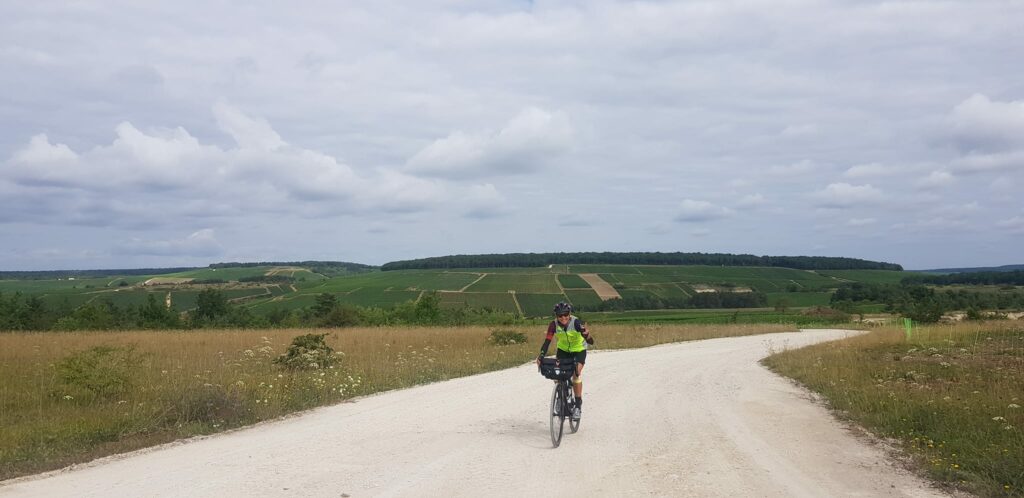 Puis découverte de 4 « Chemins blancs » pour un total de 12,9 km. Ce sont des sentiers crayeux qui serpentent au milieu des vignes où il faut dompter les graviers et tenir l’équilibre car leur vélo et leurs pneus ne sont pas adaptés à ce type de terrain.