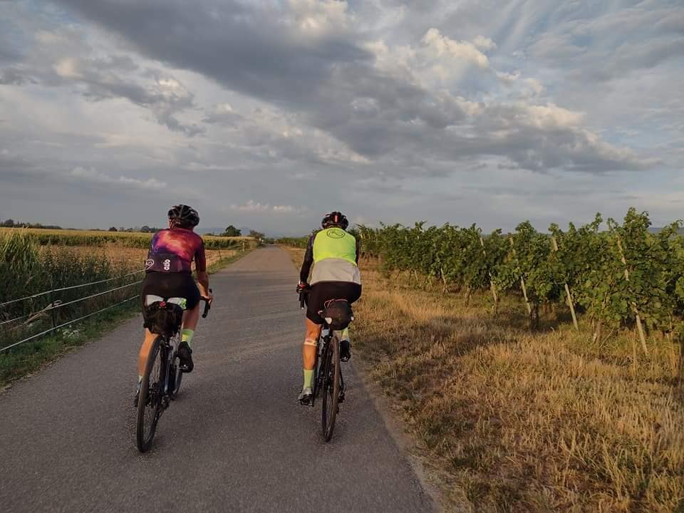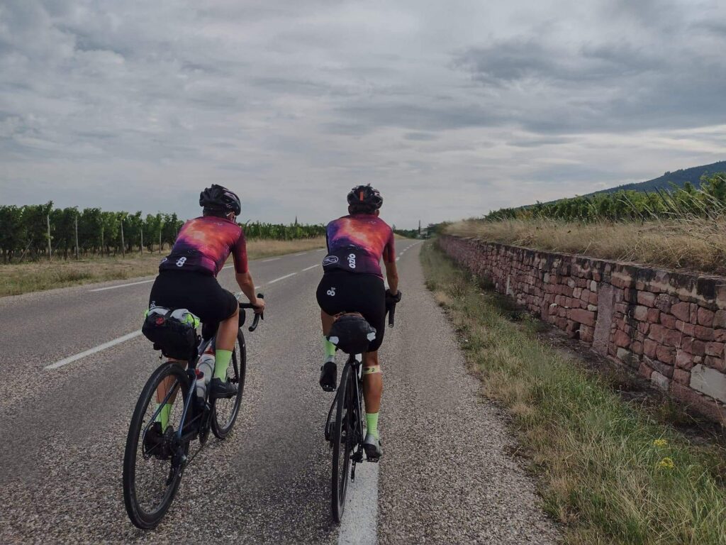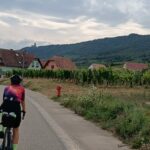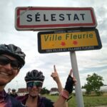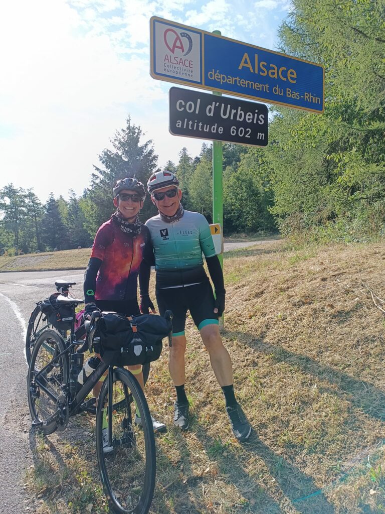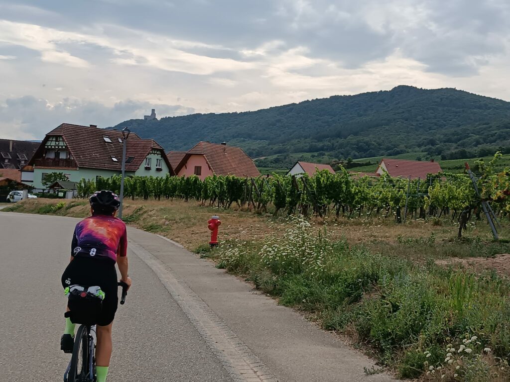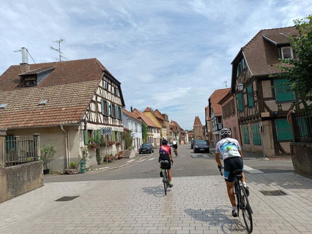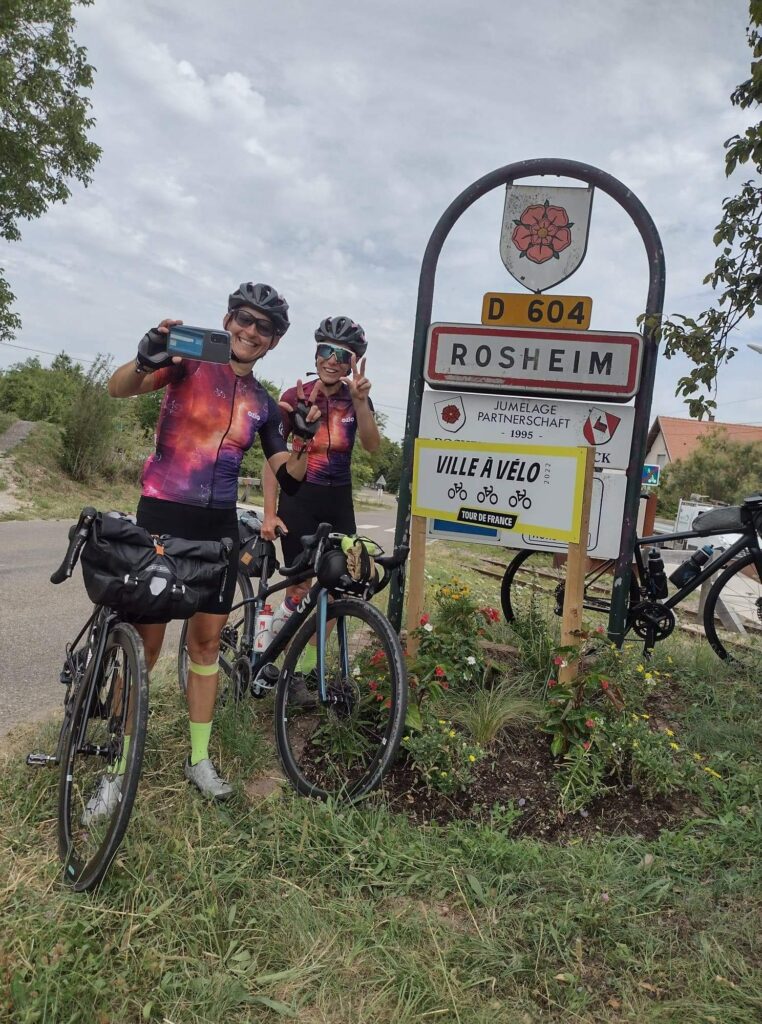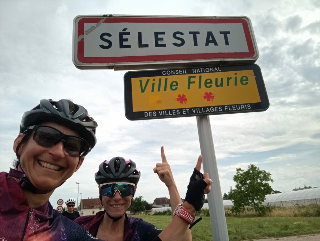 Ce matin, le père d’Aline accompagne sa fille et Isabelle jusqu’au Col d’Urbeis (22 km), frontière entre l’Alsace et les Vosges. Après un dernier au revoir, les filles partent sur les terres alsaciennes, au milieu des vignobles et des villages si caractéristiques par leur architecture, pour arriver au joli village de Rosheim pour un arrêt glace avant de rejoindre Sélestat par de petites routes et pistes cyclables.
