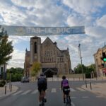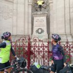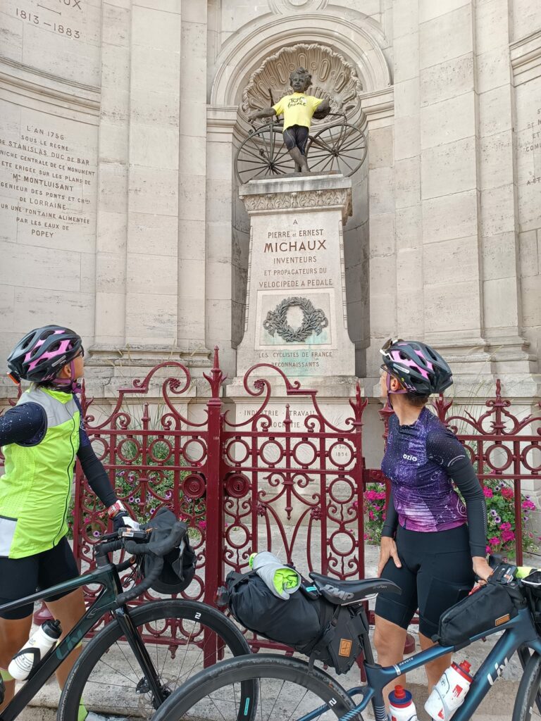 Pour commencer cette journée, Aline et Isabelle repartent sur Bar-le-Duc et pose devant la statue de Pierre et Ernest Michaux, inventeur et propagateurs du vélocipède.