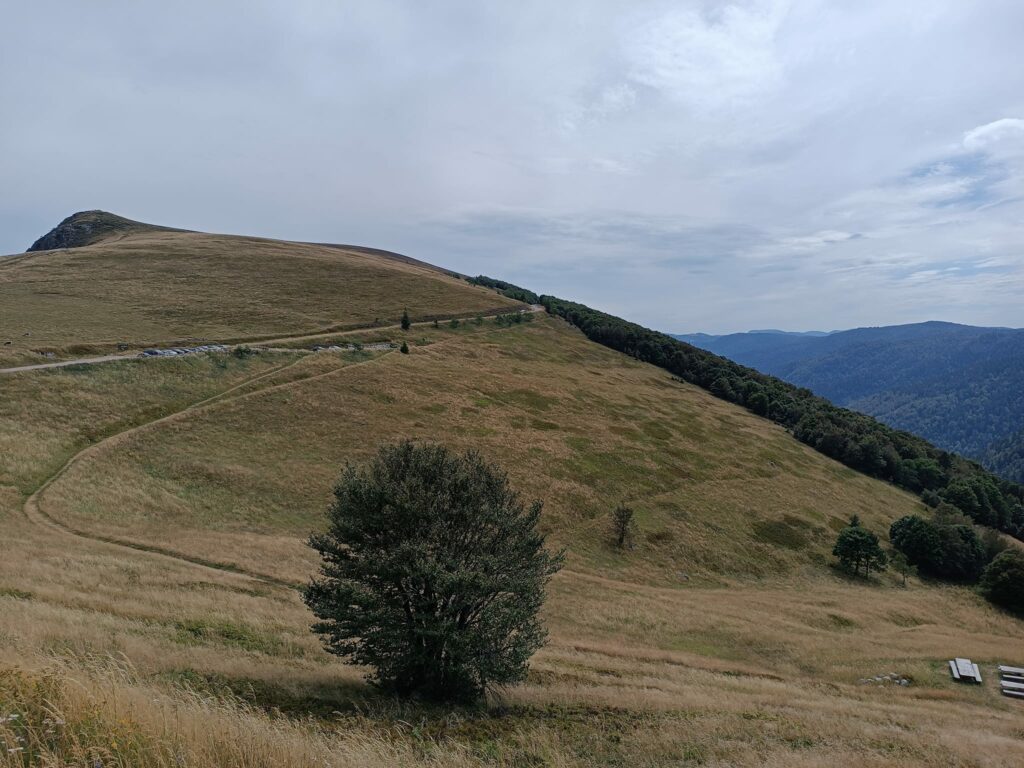 Ensuite Isabelle et Aline récupèrent la route des Crêtes jusqu’à Markstein puis se régalent de la longue descente de 14km jusqu’à Kruth, avant de rejoindre le Col du Grand Ballon.