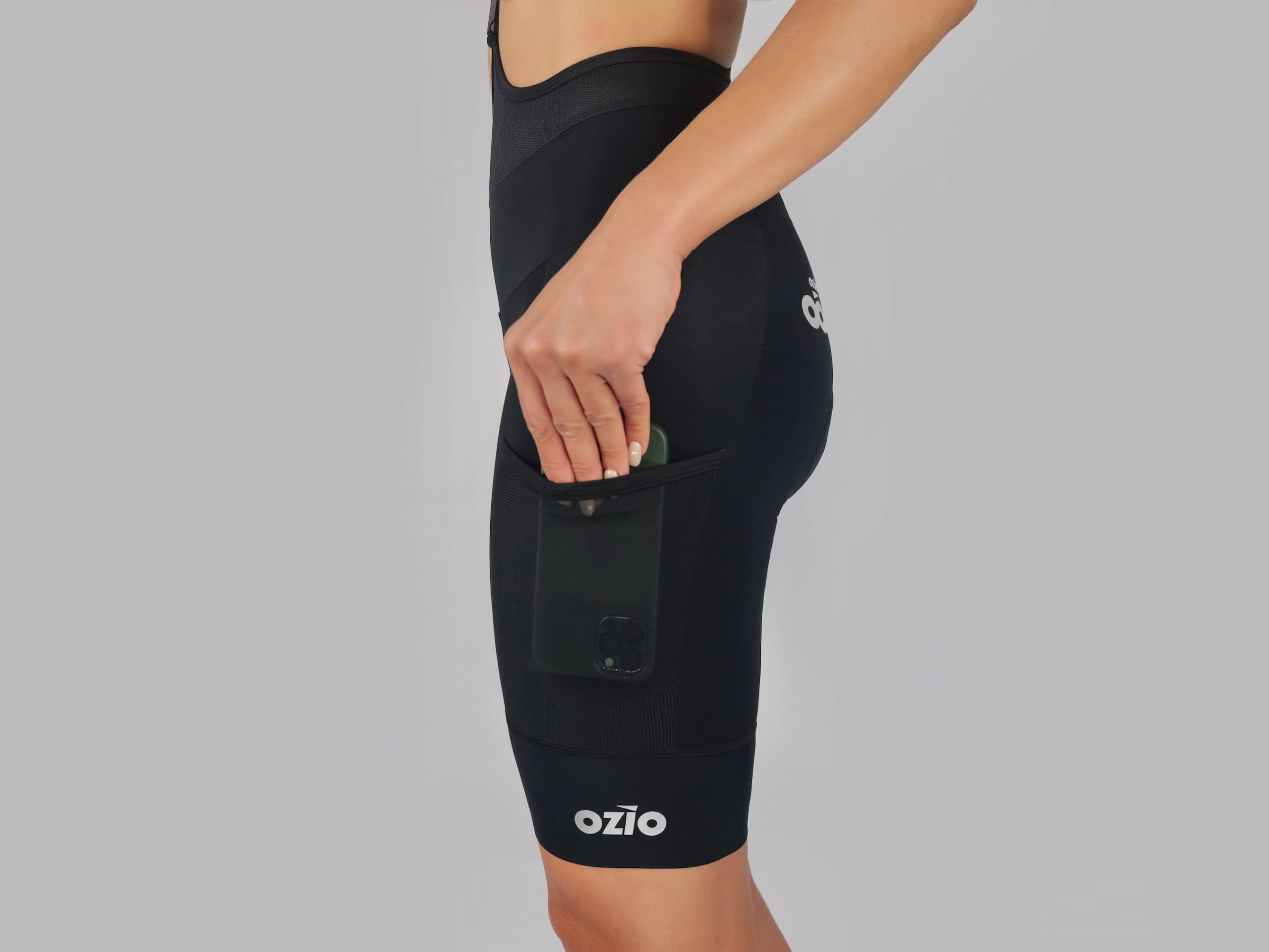 - pour la visibilité par faible luminosité, présence du logo réfléchissant OZIO sur l’arrière gauche du cuissard et sur la cuisse gauche.