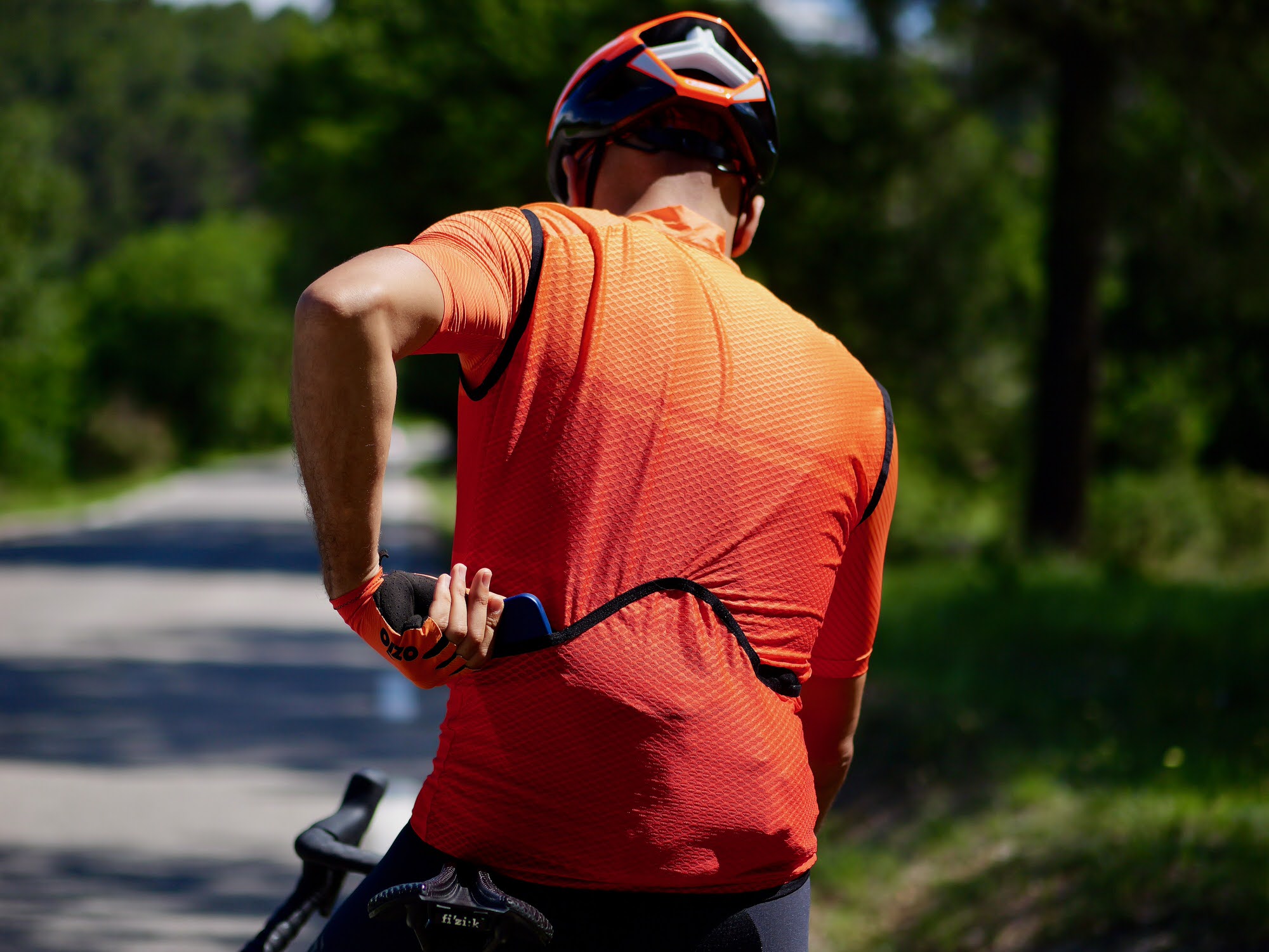 Notre gilet coupe-vent offre un avantage indéniable par rapport à ceux des autres marques ! Nous avons longuement réfléchi avec notre fabricant, et développé plusieurs prototypes, afin de vous proposer une vêtement qui permette d’accéder aux poches du maillot porté en dessous. Comment est-ce possible ? Par ses deux ouvertures situées à la hauteur des poches arrières du maillot. Très pratique pour chercher quelque chose dans une poche en roulant, il n’y a plus besoin de soulever le coupe-vent.