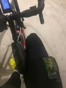En nourriture, elle avait préparé des petits sandwichs, du pain d’épice, des bananes, des barres céréales et des gels énergétiques. Plus des ravitaillements en cours de route (pizza, viennoiseries).
